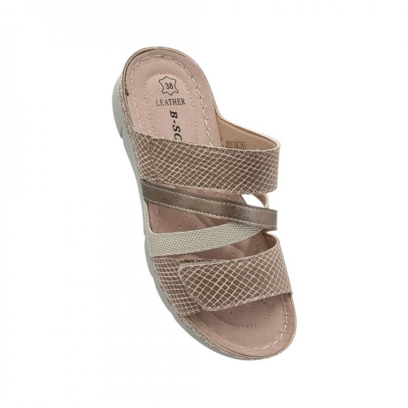 Γυναικείες Καλοκαιρινές Παντόφλες B-Soft Ανακαλύψτε την απόλυτη άνεση με τις καλοκαιρινές παντόφλες B-Soft. Διαθέτουν ανατομικό δερμάτινο πάτο προσφέροντας στήριξη και ξεκούραστο βάδισμα όλη μέρα. Είναι ελαφριές, ιδανικές για χρήση τόσο μέσα στο σπίτι όσο και για βόλτες στην πόλη. Το πρακτικό κούμπωμα Velcro (χριτς-χρατς) εξασφαλίζει τέλεια εφαρμογή και ευκολία στη χρήση. Ένα άνετο υπόδημα για κάθε καλοκαιρινή, καθημερινή σας δραστηριότητα. Mod 2611