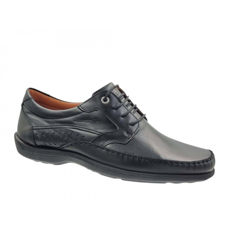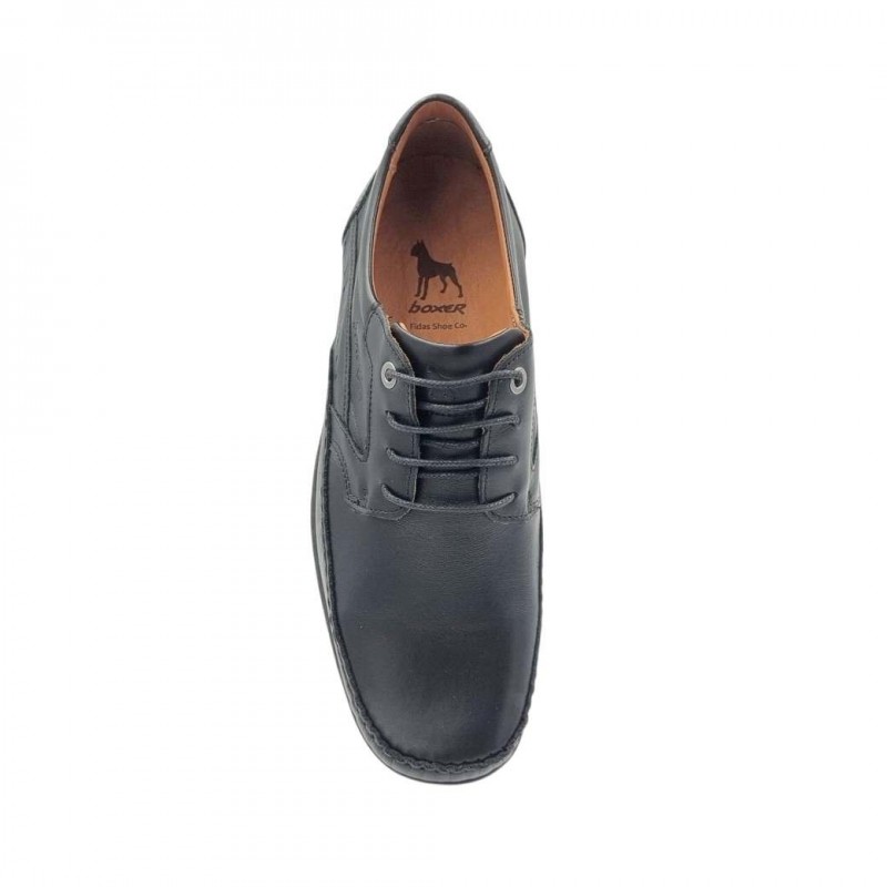 Boxer shoes. Ανδρικά δερμάτινα δετά παπούτσια. Διαθέτουν δερμάτινη φόδρα και αερόσολα από θερμοελαστκό υλικό για ξεκούραση και ασφάλεια. Ένα παπούτσι "εργαλείο", για πόδια που ταλαιπωρούνται από βάδισμα και ορθοστασία. ΜΠΟΞΕΡ " Ένα Ελληνικό παπούτσι στα πόδια σας". Mod 15373 15-011.