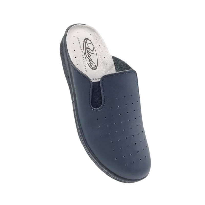 Relaxa Sanit 2E Μπλε. Γυναικεία δερμάτινα σαμπό για το σπίτι ή τη δουλειά. Σχεδιασμένα να ξεκουράζουν τα πόδια και να υποστηρίζουν σωστά τη μέση και τα γόνατα. Άνετα στο περπάτημα και στην ορθοστασία.